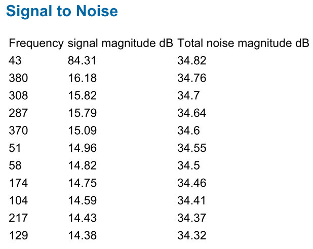 With this analysis the so-called Signal to noise ratio (SNR) can be read from the generated Table 2.