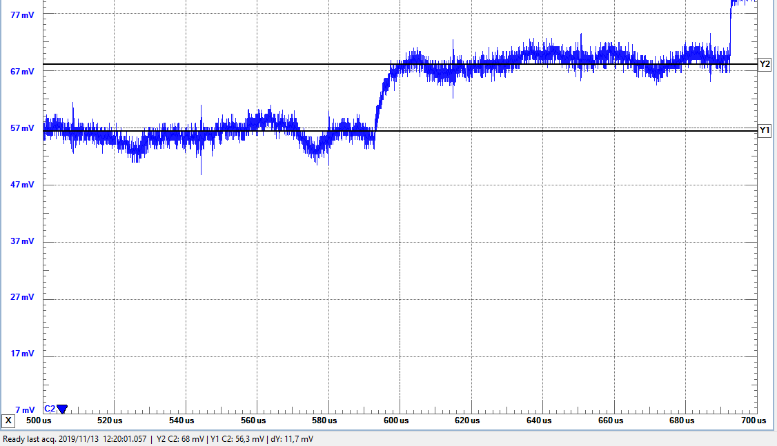 The measurement of the LSB can be seen in Figure 8: and shows a voltage of nearly 11.7mV