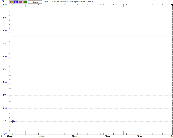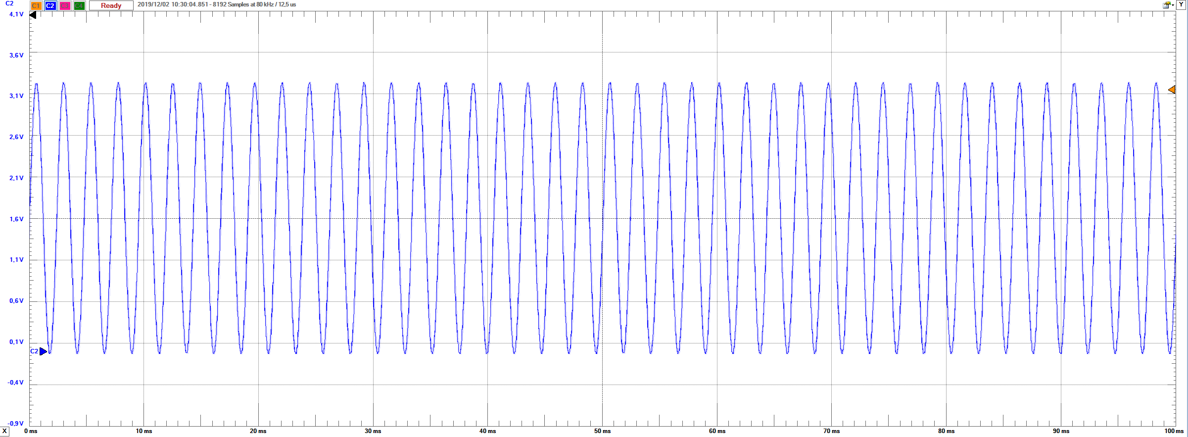 In order to examine the signals, the output signal of the DAC was connected to the digital oscilloscope