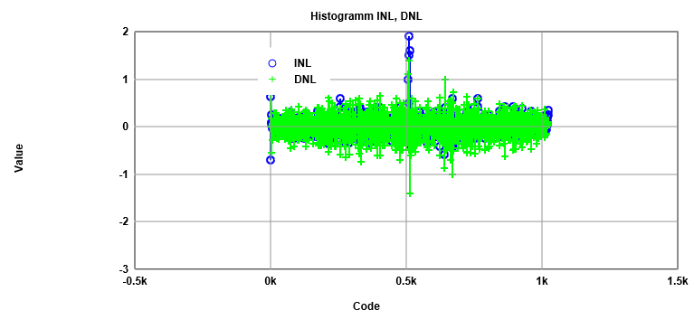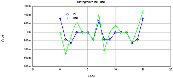 The 'Read Raw File'-Tool also calculated the INL and DNL error at each code. To verfiy the calculation of the tool the INL and DNL