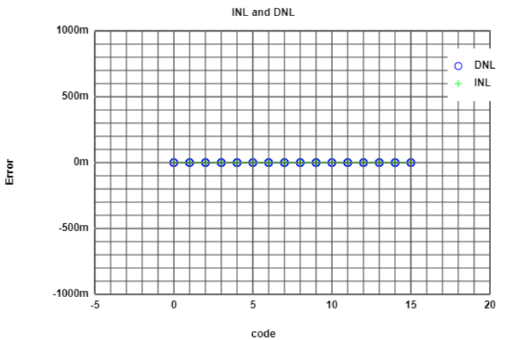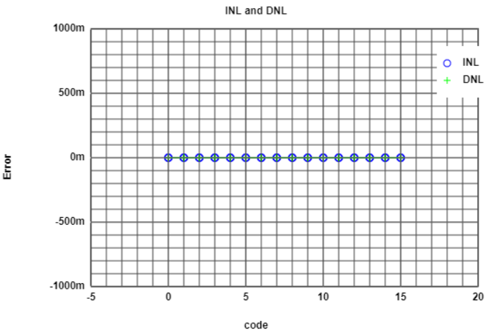Due to the fact that \(INL(code) = \sum_{i=0}^{code}DNL(i)\) the INL error is also 0 for all levels.