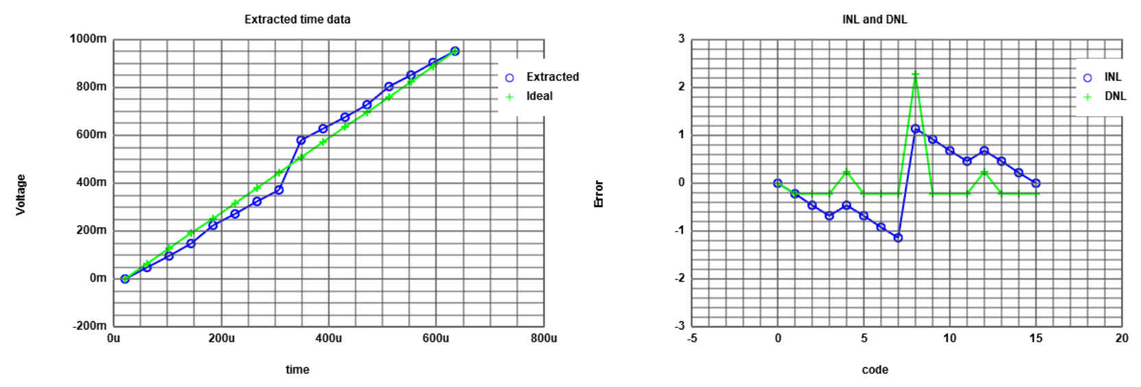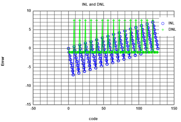 With this table it is possible to calculate the DNL and INL. The results are shown in the picture above.