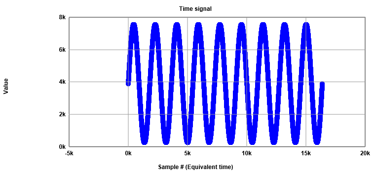 We start the ADC DAC test simulation again. This time we change the input from a ramp signal to a sine signal.