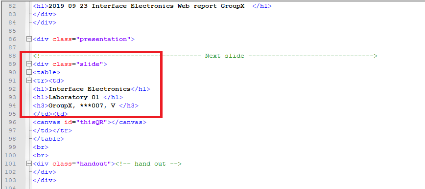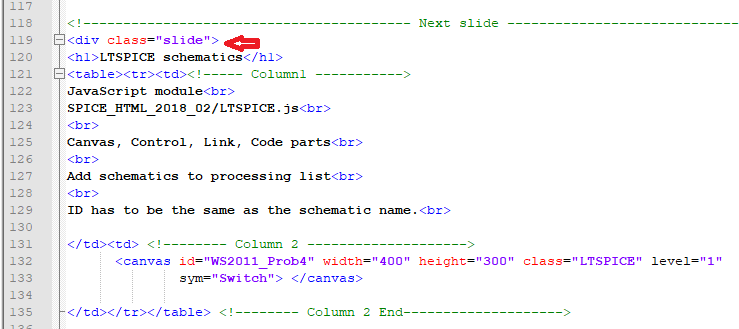 The class "slide" inside the code represents a slide when seen such as.