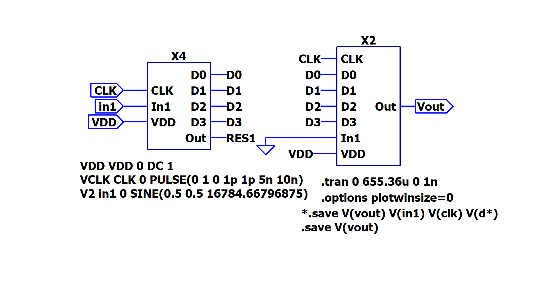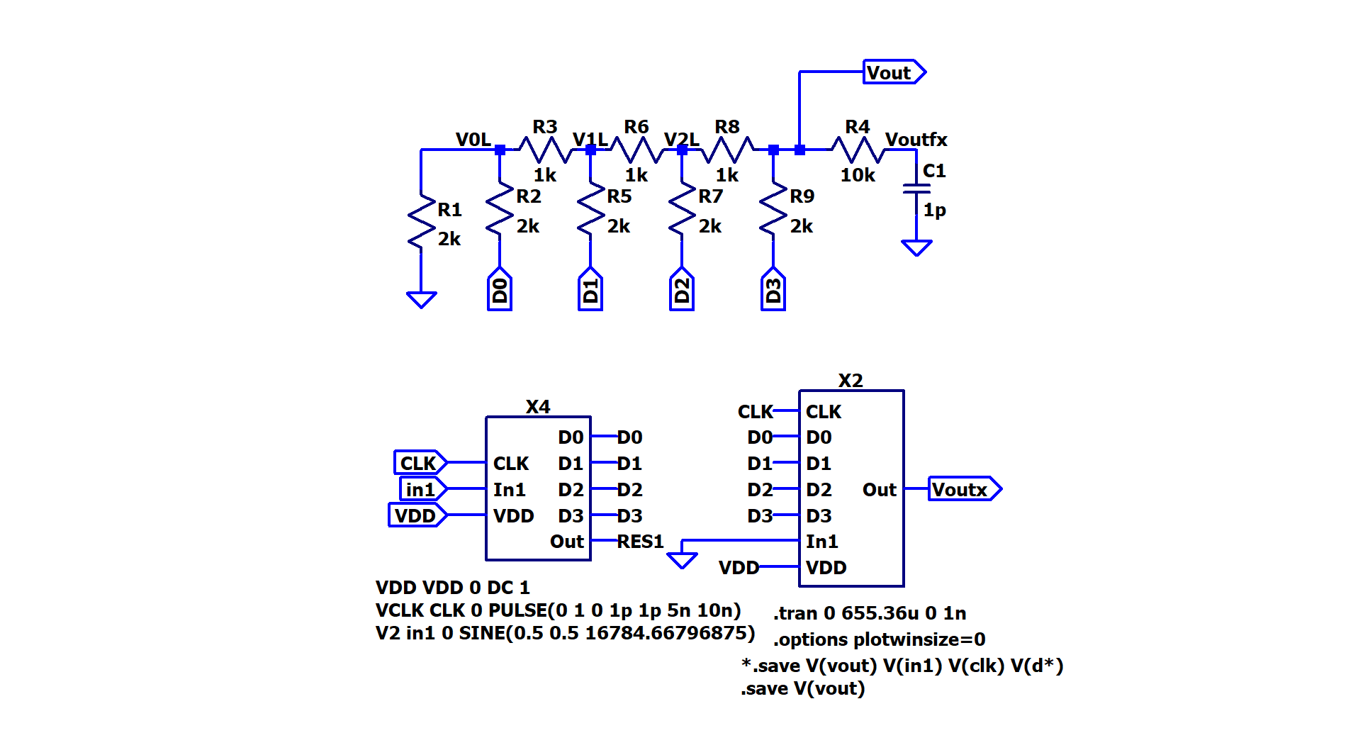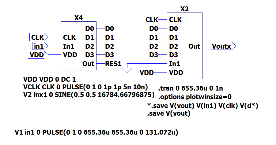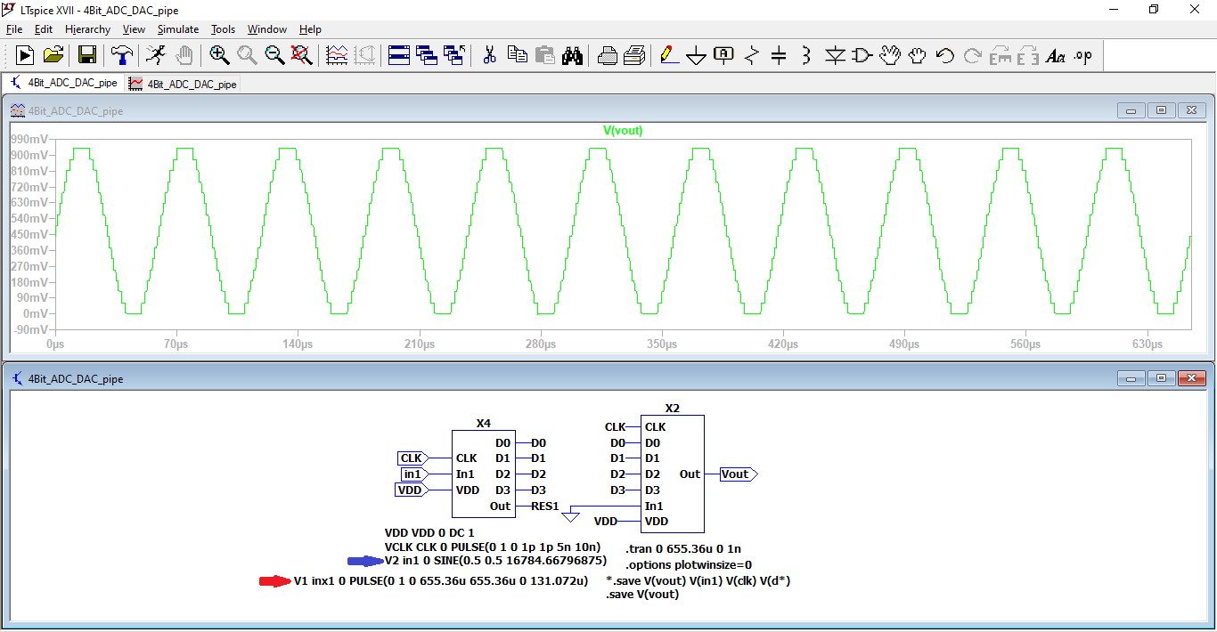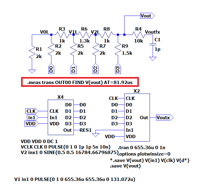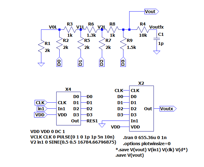 4-bit ADC and DAC are drafted on the software LTspice as shown in the figure.
