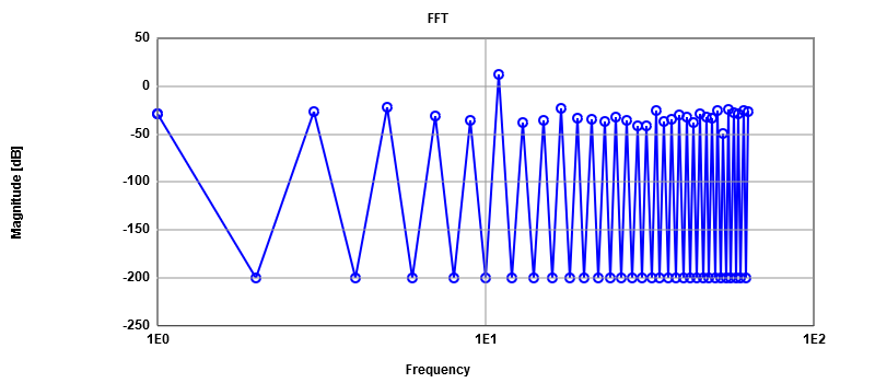 A FFT curve is generated after having processed the values; a lack values can be seen on it and some noise level.