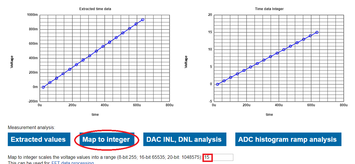 Mapping again by the same range 0-15 and clicking on the "ADC histogram ramp analysis" yields the following.
