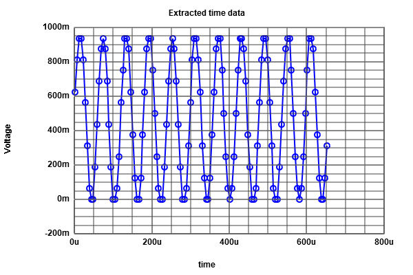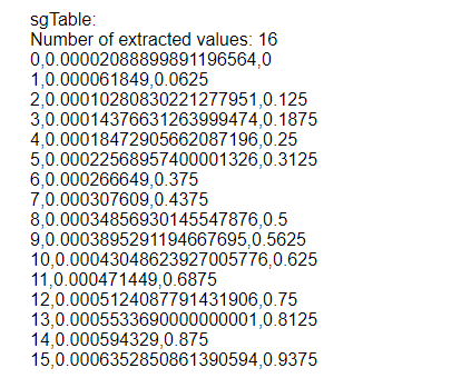 The tool takes 128 samples throughout the period, making up 16 values from top to bottom of the sine wave.