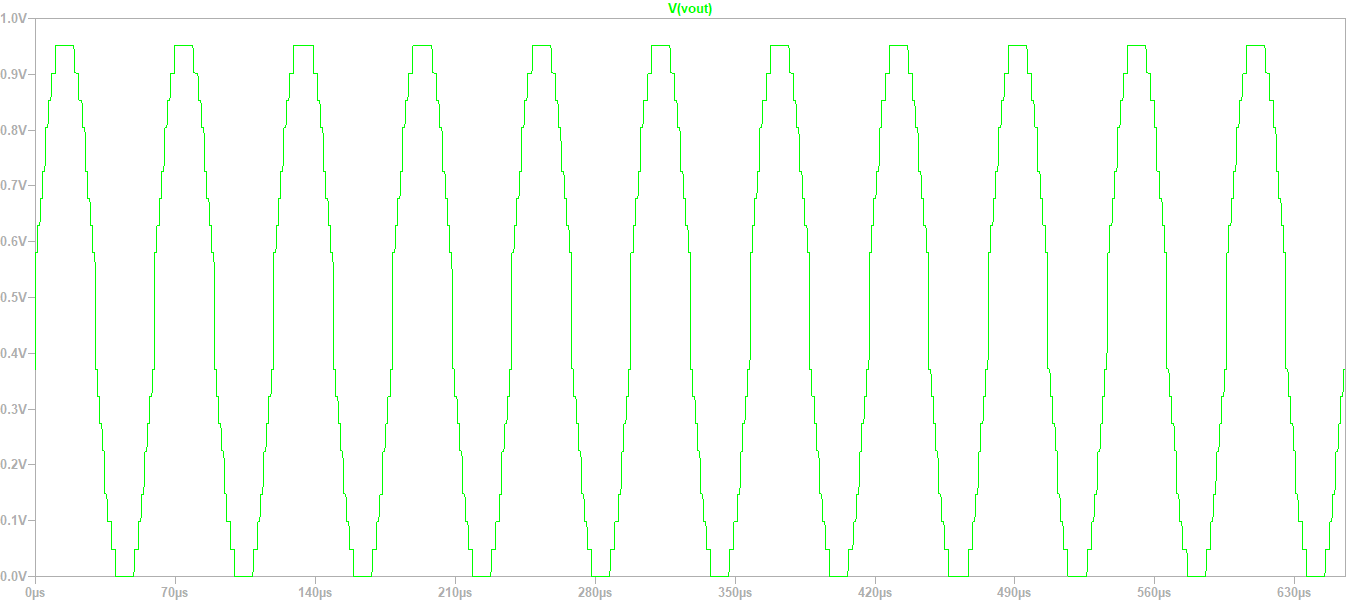If we change resistor values of the R2R DAC, it will malfunction as shown graphically.