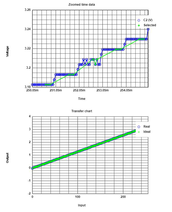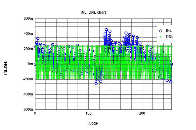 The goal of labaratory exercise was to analyse the INL and DNL values of the constructed 8 bit
