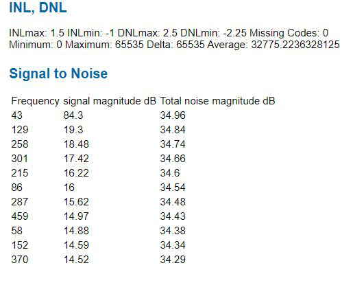 INL and DNL analysis (filtering of the signal)using java script tool (FFT) were performed. The INL DNL graph and values were obtained(Picture 4 and 5).