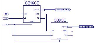 8 | Wählen Sie den Reiter 'Symbols' unter dem linken mittleren Fenster. Unter dem Punkt 'Categories' wählen Sie 'Counter' aus. Unter dem Punkt 'Symbols' wählen Sie CB16CE aus und platzieren Sie das Symbol. Informieren Sie sich durch Klick auf den Schalter "Symbol Info" über die Funktion des Schaltungsblocks. Unter dem Punkt Symbols wählen Sie dann CB8CE aus und platzieren Sie das Symbol. Legen Sie Drähte (Verbindungen) ![]() ![]() Eingänge und Ausgänge kann man nur am Ende einer Leitung setzen. Durch einen Doppelklick auf den Eingang kann man den Namen editieren. Verbinden Sie den Ausgang CEO von CB16CE mit dem Eingang CE von CB8CE. Verbinden Sie C und CLR von CB8CE mit den entsprechenden Leitungen von CB16CE. Erzeugen Sie die Ausgänge LOWBITS(15:0) und HIGHBITS(7:0) (OUTPUT). Die Schaltung sollte dann folgendermaßen aussehen. ![]() |