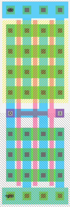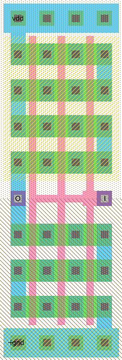 On the left is GND, on the right VDD, on the top inputs, on the bottom outputs.
