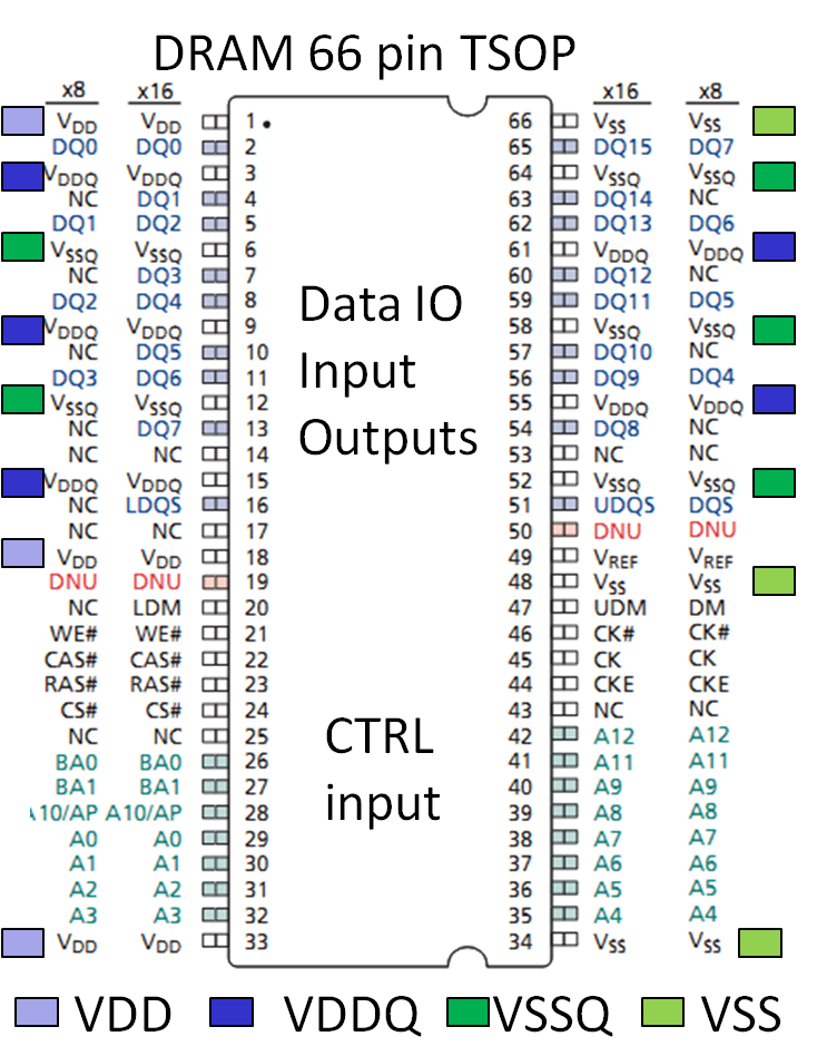There are separate power supply pins for the data input and outputs (IO).