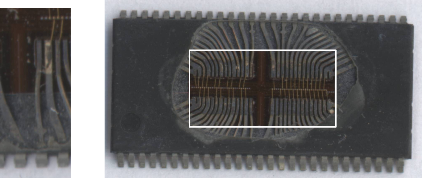 Gold bond wires connect the chip pads with metal lead frame.