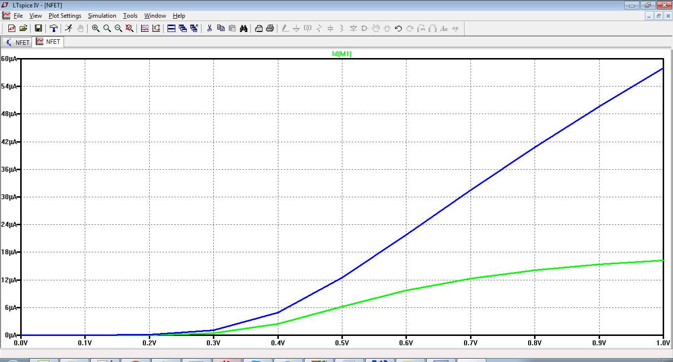 inverters at 1V and room temperature varying NFET PFET ratio and
