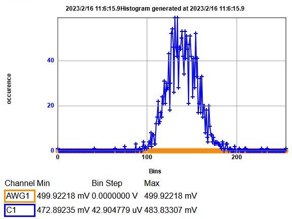 amplitude and offset, the oscilloscope, fft and histogram was created.