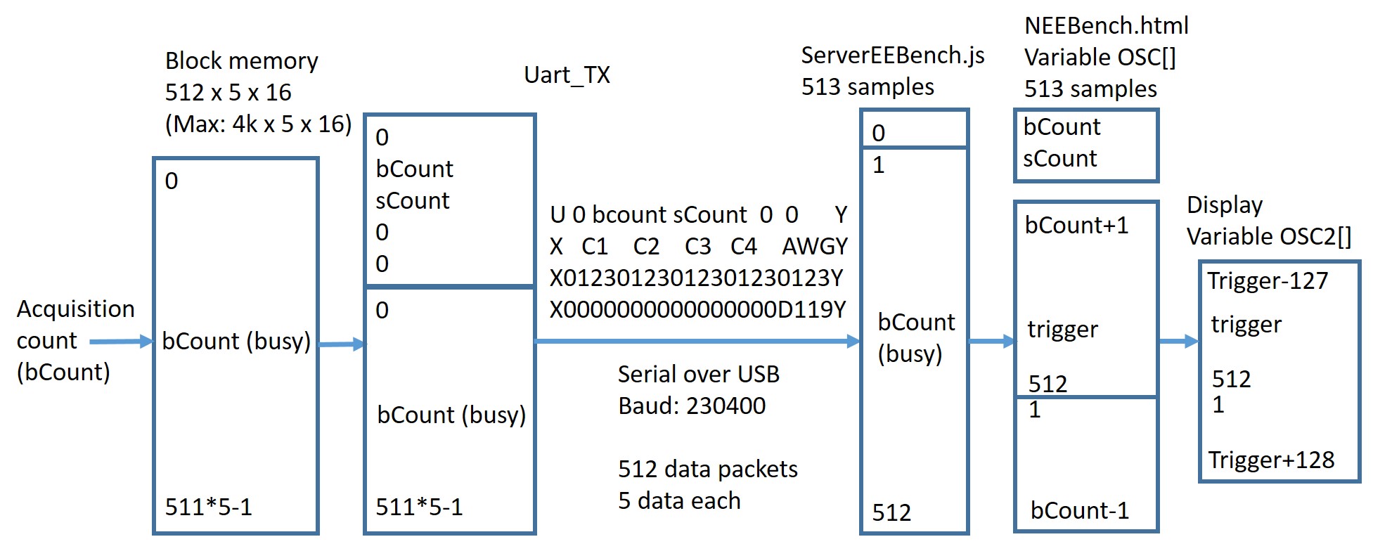 with 8k sample memory and UART control was created. A nodeJS server