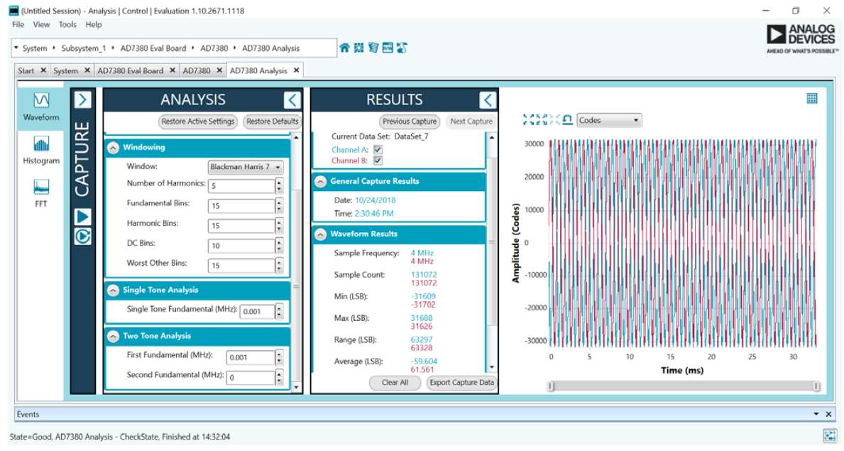 There is voltage sample data and code data display available. A measured signal