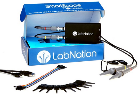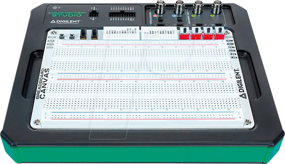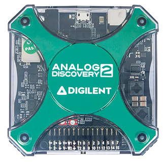 arbitrary waveform generators, digital inputs and outputs, voltage and current measurements and an oscilloscope (4 channels).