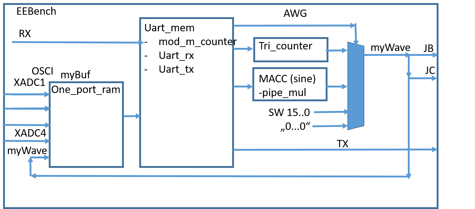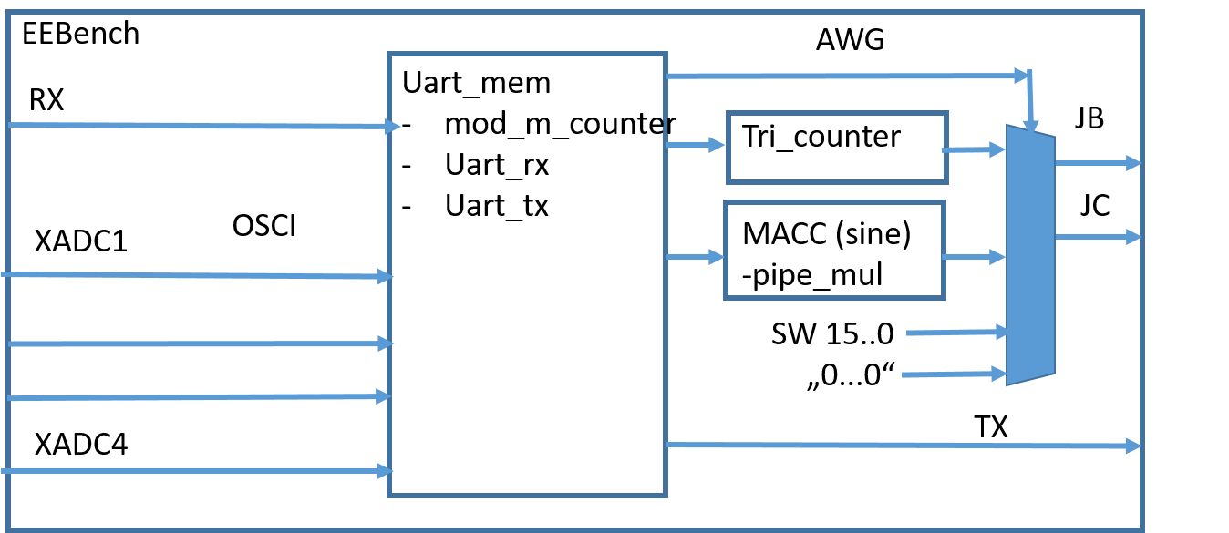 The FPGA configuration is done using the VHDL project files: VHDL project files EEBench_V06.zip
