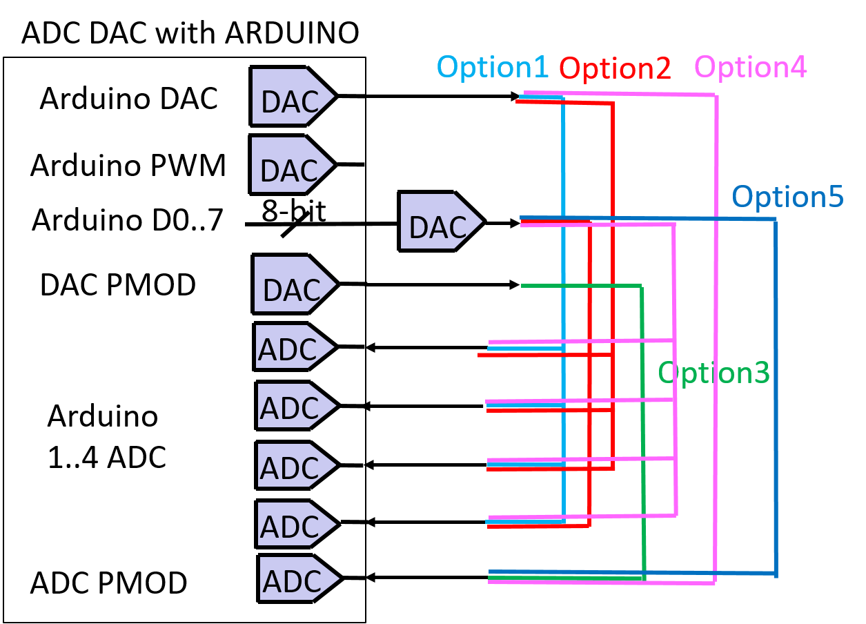 0:0:0 Hello 0:0:34 Task until 23.11.2020 0:1:40 Review Laboratory 0:2:14 Task connect PMODs 0:3:2 3 DAC and 5 ADC for testing 0:5:27 Test with higher resolution 0:7:49 Load example data 0:8:45 Number of bits, offset, gaine error, LSB, INL, DNL 0:9:28 Paste log text in Excel 0:9:50 Text in columns 0:10:33 Header line 0:11:33 Insert graph point x-y 0:11:57 Resolution DAC 8 bits, ADC 10 bits 0:12:52 Minimum, maximum, average (mittelwert) 0:13:40 Offset, Maximum, gain error 0:17:58 Eliminate offset and gain error 0:18:56 Pivot table 0:19:31 Missing codes 0:21:46 115 codes 0:23:56 Second Arduino sketch including PMODs 0:25:1 Select data for FFT tool 0:26:33 Sine, FFT, INL, DNL 0:28:54 Signal to noise ratio 0:29:41 Missing codes 0:30:36 Number of bits 6 0:34:11 Start Code review 0:34:41 Sine lookup table, array OSC1..4 0:36:11 Setup code IOs, and serial 0:36:58 R2R DAC lines 0:37:21 Loop 0:38:57 More samples 0:39:52 Extended program 0:39:59 Ramp implementation 0:40:51 Write DAC, read ADC 0:41:33 Select waveform |