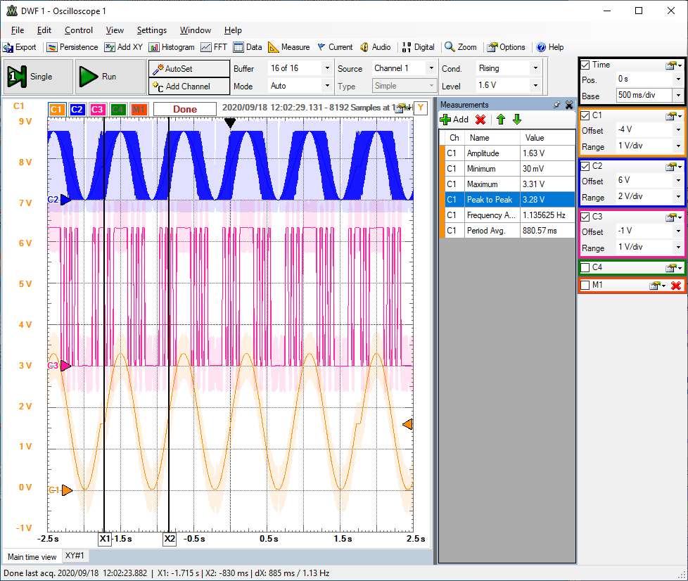 Time (s);C2 (V) 0;0 1;0 2;0 ..DAC ramp data can then be copied and analyzed with Javascript read oscilloscope data tool .