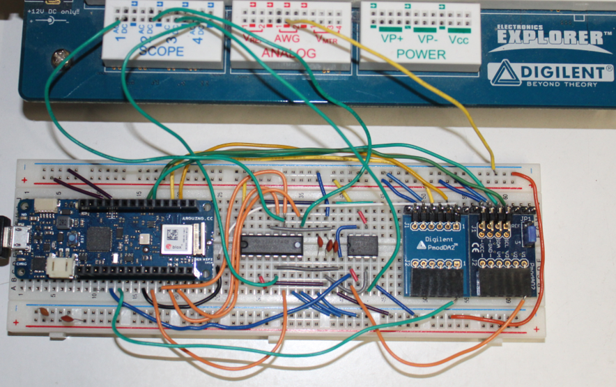 Use ADCs (serial port) and Electronic Explorer oscilloscope input (Export data) for acquiring signals