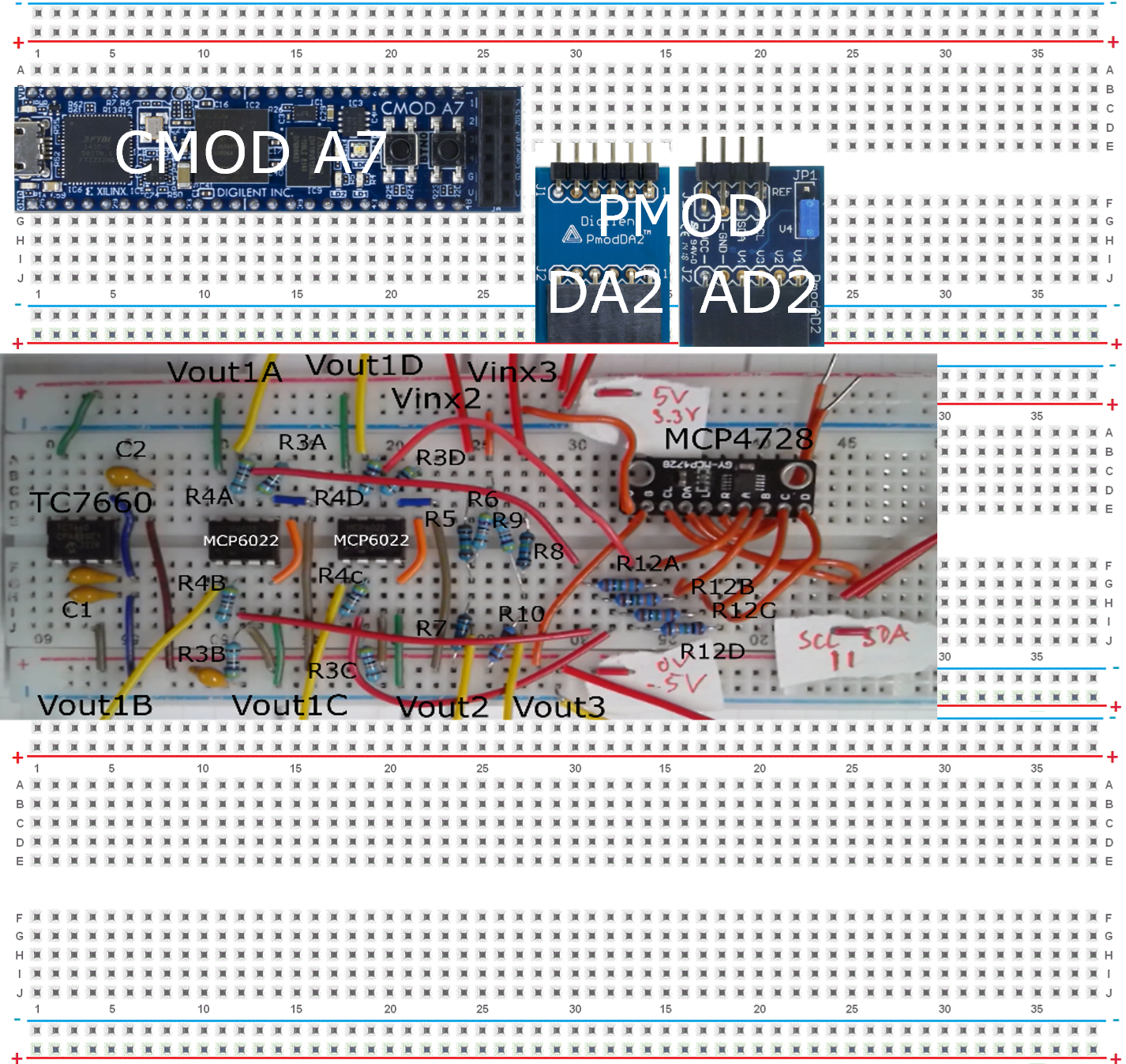 Figure: Breadboard configuration of CMOD A7