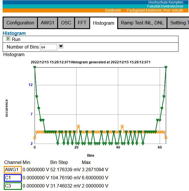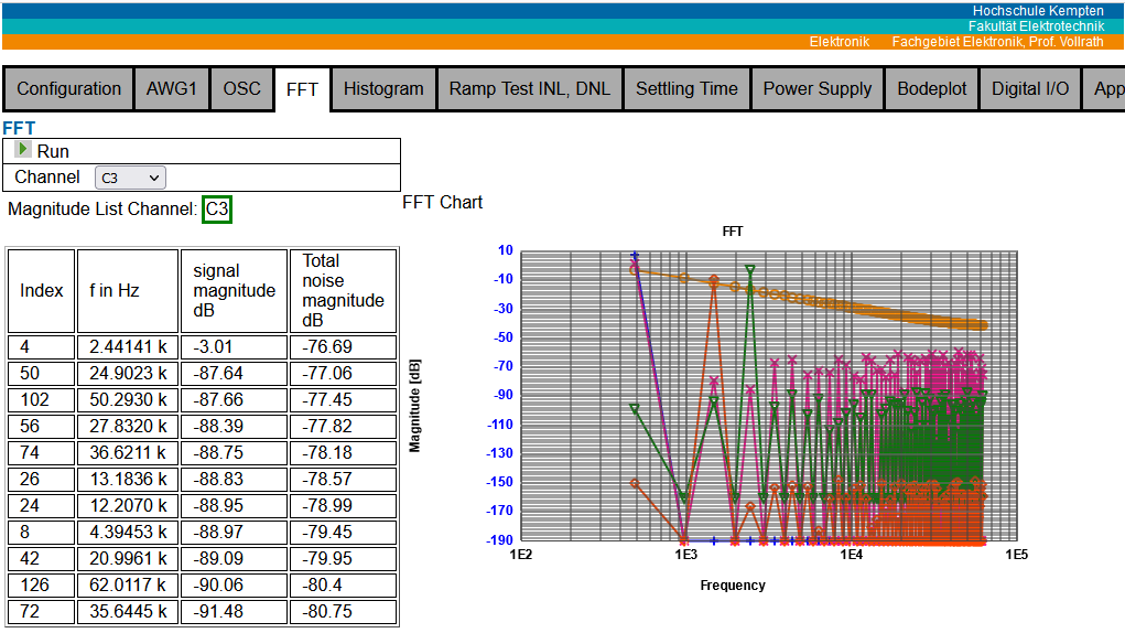 There is an additional special Arduino Interface for INL, DNL and SNR, FFT operation,