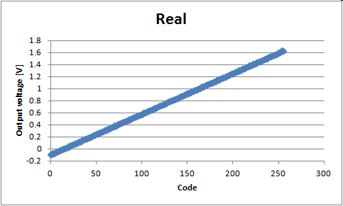 The input range is from -90mV to 1.63V with a intended step size of 6.7mV.