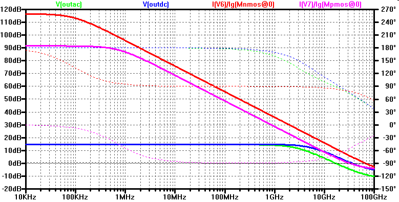 With this DC value and AC voltage do AC Analysis to find transit frequency ft