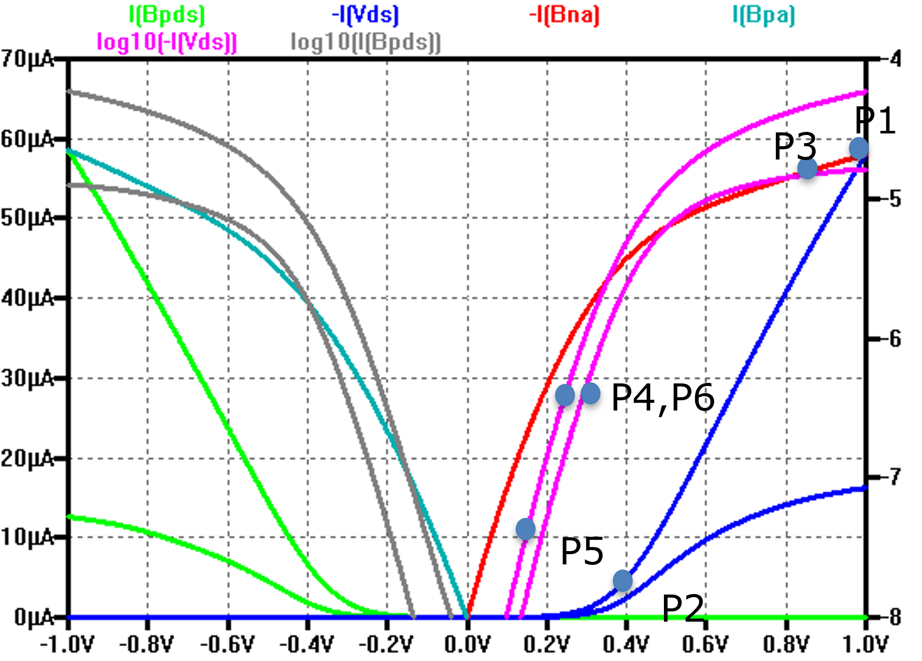 2) Screenshot of combined IV curves of NFET and PFET in xx nm with readable text.