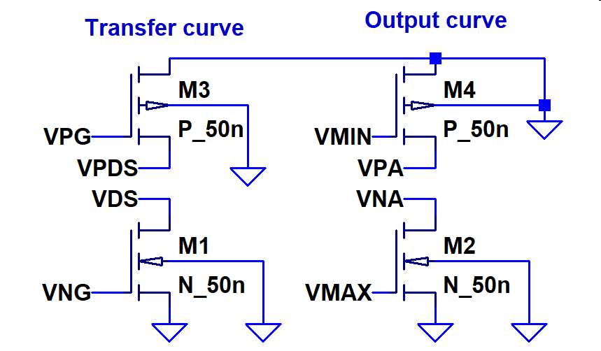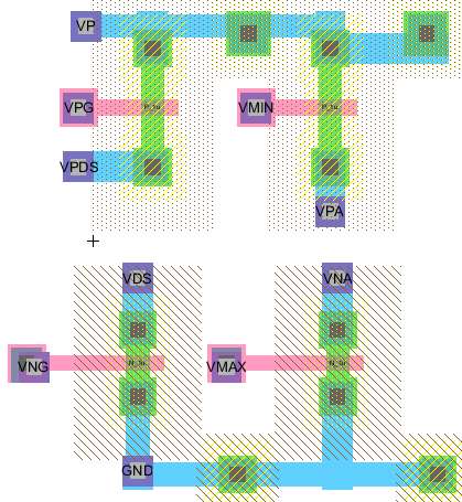 3) Layout of the NFET and PFET simulation circuit.