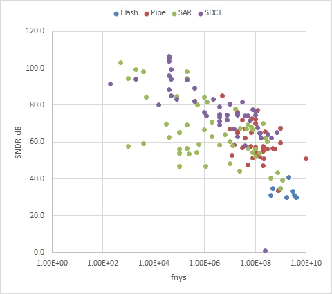 Medium priority: open Mr. Murmann provides an ADC survey, Digikey provides selection tables for ADCs and DACs. Typical big data analysis should be done. Available parts for given Nyquist frequency and number of bits NBit. What is the best architecture? How does an architecture scale with feature size? Compare publication to available parts. What part has the highest inventory? | ![]() |